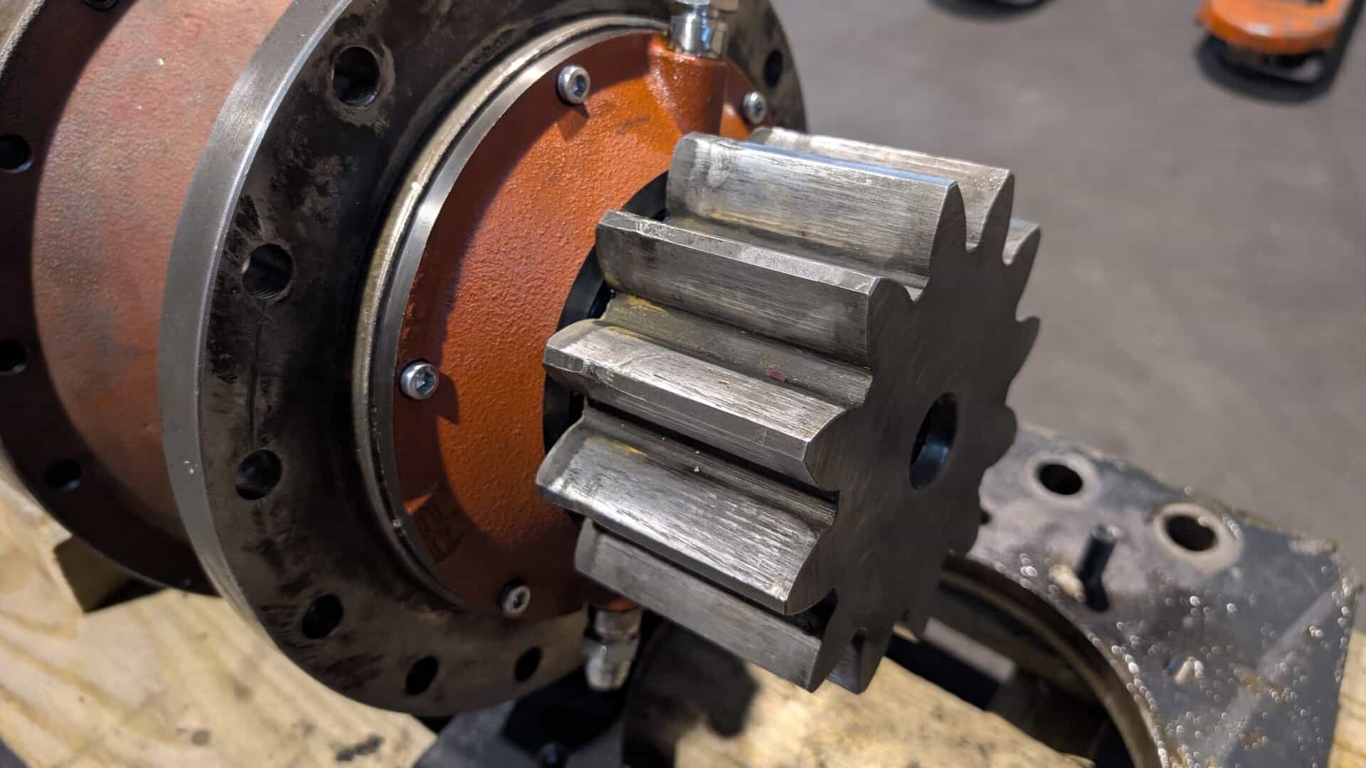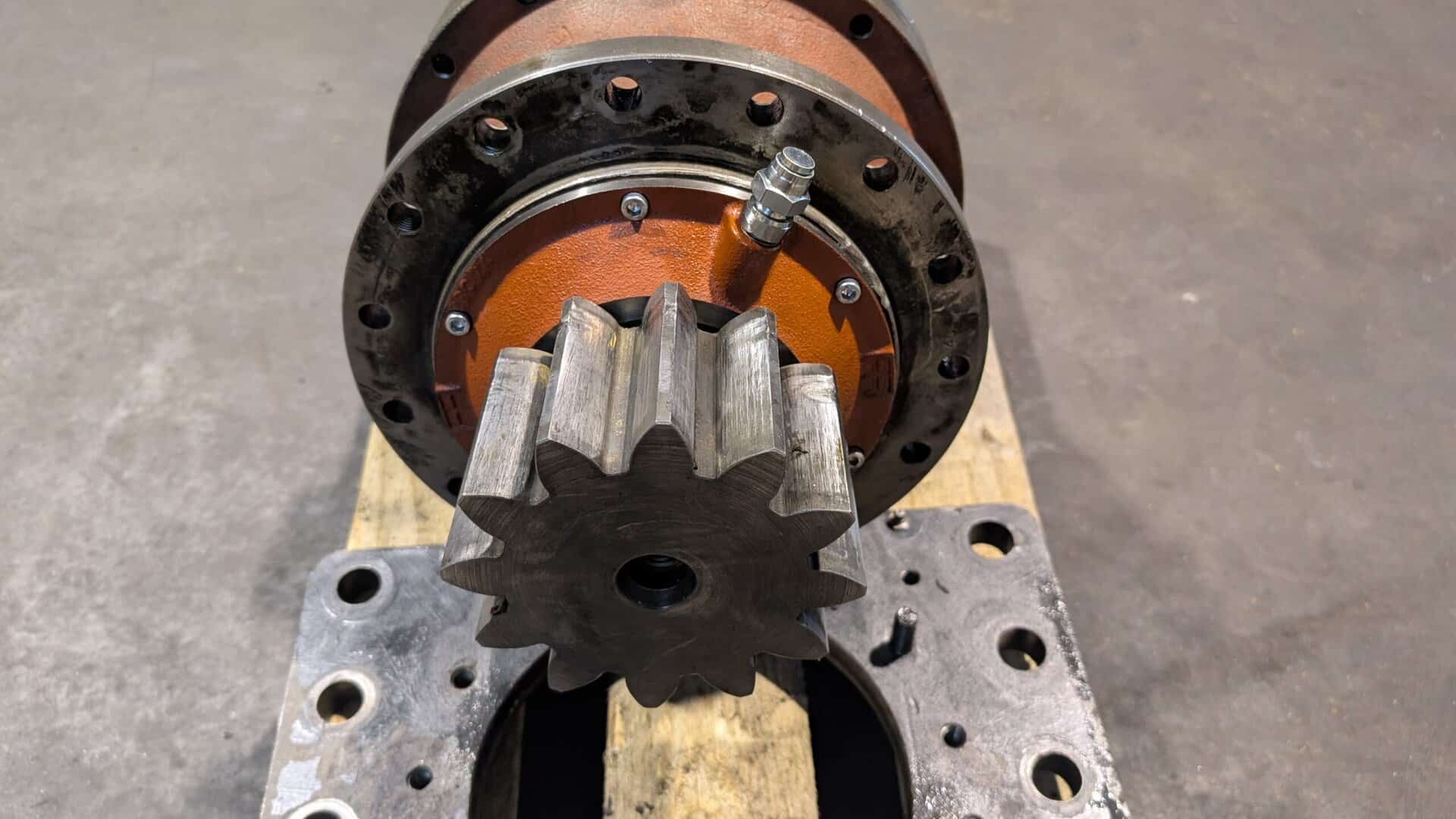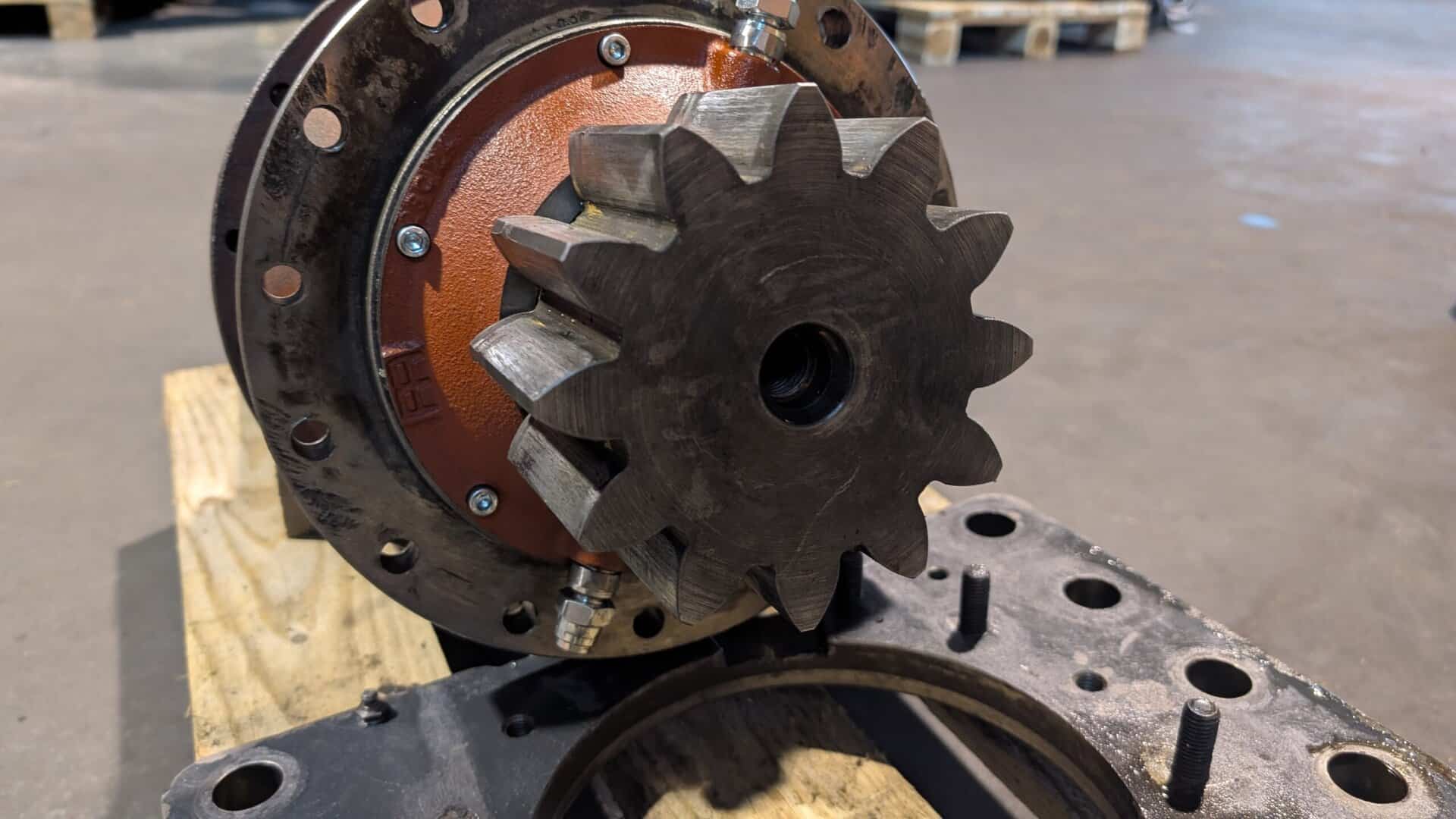 Regenerowana przekładnia obrotu żurawia z hamulcem.